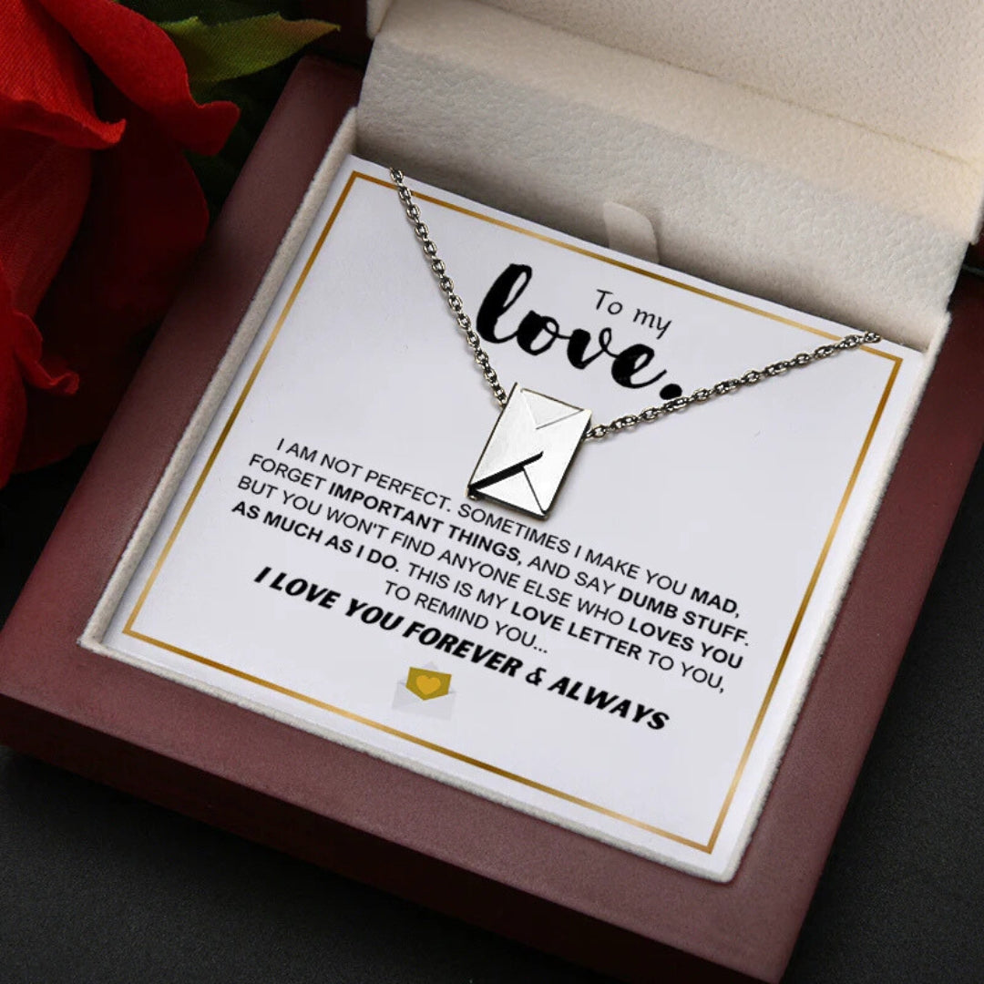 Dieses Geschenkset enthält die elegante Love Letter-Halskette, die Ihre Liebesbotschaften festhält und in Erinnerung behält. Sie wird in einer hochwertigen LED-beleuchteten Geschenkbox geliefert, die den Glanz der Kette unterstreicht, sowie einer gefühlvollen Grußkarte – eine unvergessliche Möglichkeit, Ihre Liebe auszudrücken.